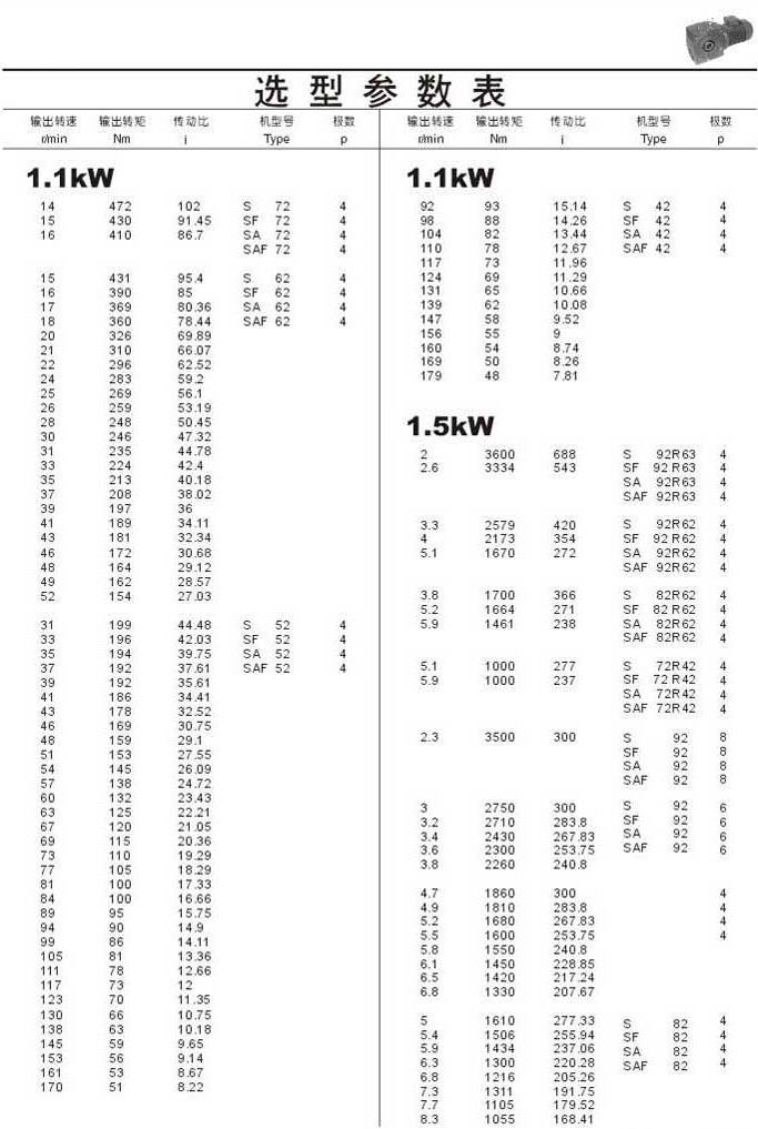選型參數(shù)表1.1kW(續(xù))和1.5kW