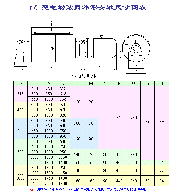 (1)因目前外裝式電動滾筒尚未制定相關(guān)行業(yè)標準,本廠將該型號電動滾筒首位代號用W(“外裝”的首位漢語拼音)表示。外裝式電動滾筒外置電機可分為立式電機和臥式電機,用戶訂購時請加以說明;